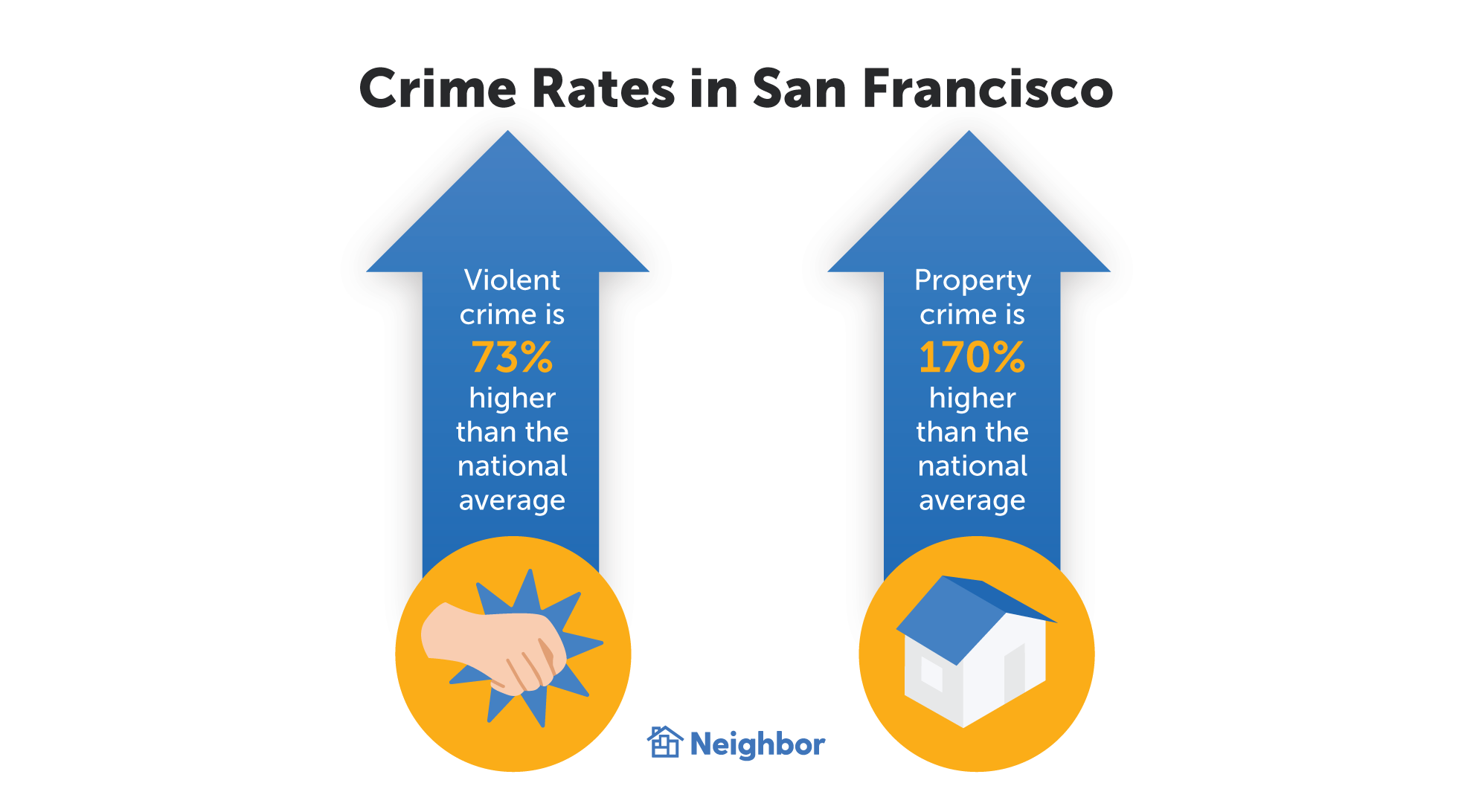 San Francisco’s violent crime rate is 6.91 per 1,000 residents, compared to a national average of 4 per 1,000 residents. In San Francisco, your chances of becoming a victim of a violent crime are 1 in 145.